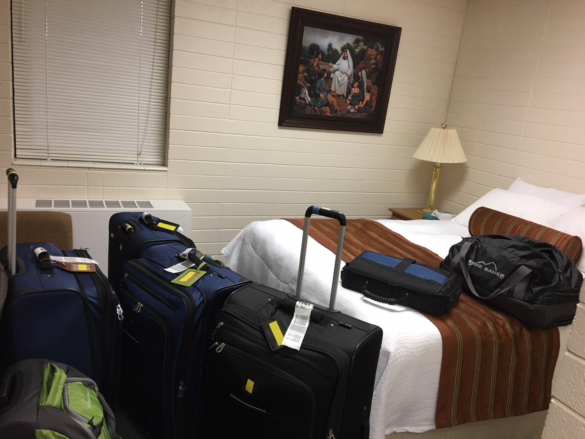 Driving down through Provo and driving onto the Missionary Training Center complex we were met by Elders who were taking those Senior Missionary couples arriving to the main processing desks. People greeting everyone coming in as though they had expected important guests. We followed from counter to counter where we received our name badges, got our picture taken, flight and travel information, and then the Elders took our luggage to the third floor to our room. They didn’t have any problems taking up 50 pound suitcases (one in each hand) up three flights to our room. Home Sweet Home till we leave for Sweden on Monday the 15th!